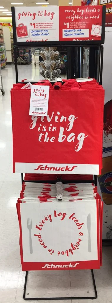 Finding the Schnucks reusable Giving bags is easy! Just look for the specially designed reusable bag rack in each participating Schnucks location!